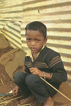 Montagnard boy in resettlement camp, 1969