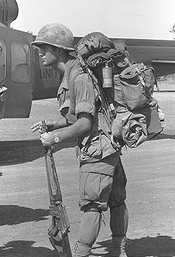 Soldier prepares to board a chopper for Laos or Cambodia (Nixon 1970 incursion)