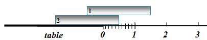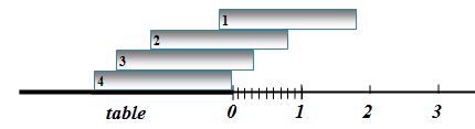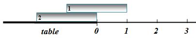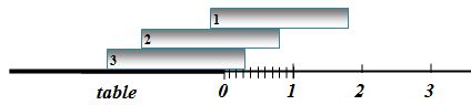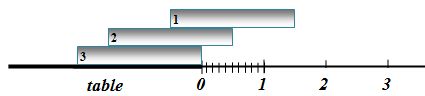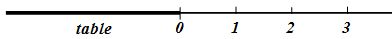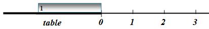 To model our problem, let's imagine a number line extending to the right of the table so that the origin is at the right edge of the table.