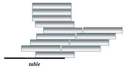 Jillian thinks again and comes up with a more imaginative way of stacking the books: she uses 'counter-weights' to produce a large overhang, as shown in the picture below.