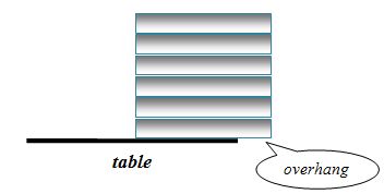 Desired overhang Blocks needed (N) 2 N = 4 4 N = 31 10 N = 12,367 22 N = 2,012,783,315 40 N = 132,159,290,357,566,703